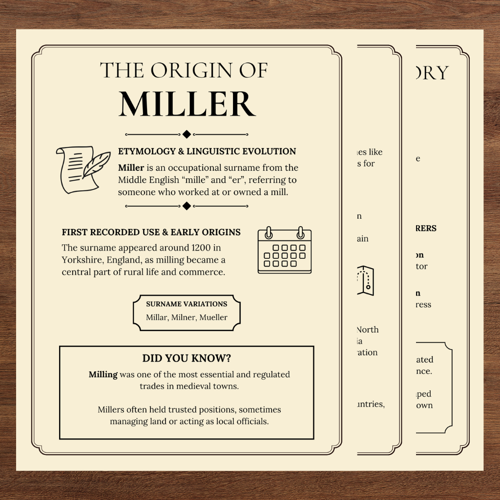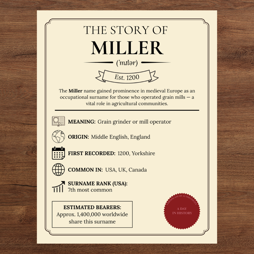 Your surname, uncovered — explore the origins, meaning, and legacy of your family name through centuries of history. Beautifully printed on parchment-style paper and housed in a premium presentation folder.